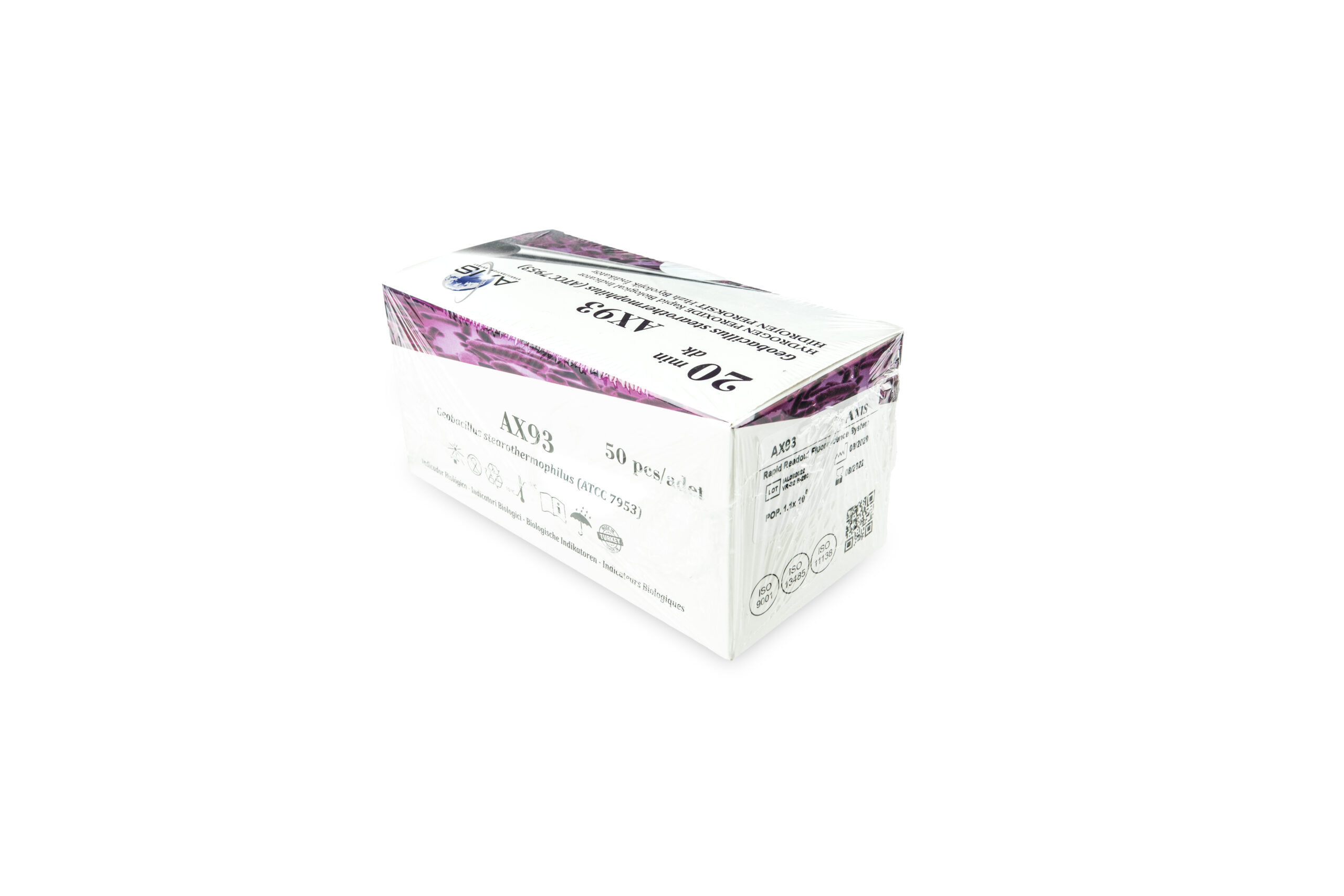 AXIS Biological indicators for Hydrogen Peroxide sterilization may contain spores of Geobacillus stearothermophilus. After exposure to the plasma, the BIs are incubated as usual to assess microbial growth, with the absence of growth indicating successful sterilization.