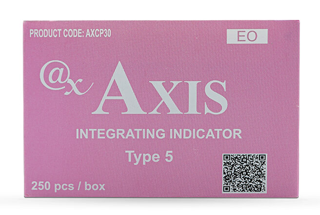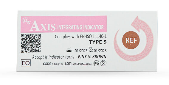 Axis AXCP30 integrating chemical indicator changes color from pink to brown upon successful exposure to predefined ethylene oxide (EO) sterilization parameters. As a manufacturer, Kordon Tıp offers customization options in design, size, and packaging to suit your specific sterilization processes.